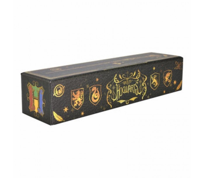 El bolígrafo Varita de Harry en 3D flota sobre un zócalo de presentación de plástico con la magia de los imanes. Se presenta en una caja de cartón duro.