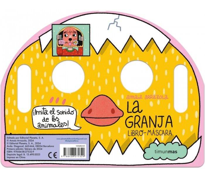 ¡Un libro de animales de la granja con un formato diferente! Pensado para agarrarlo por los agujeros laterales, ponerlo delante de la cara como si fuera una máscara, imitar el sonido del animal ilustrado y pasarlo fenomenal.